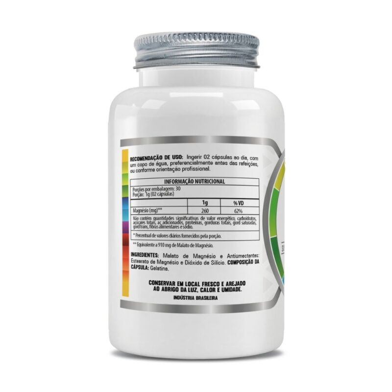 INGREDIENTES: Malato de Magnésio e Antiumectantes: Estearato de Magnésio e Dióxido de Silício. Composição da cápsula: Gelatina.