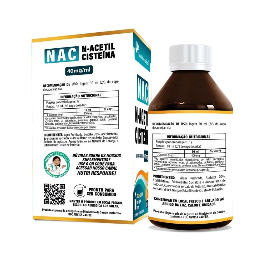 RECOMENDAÇÃO DE USO: Tomar 10ml (equivalente a 400mg de N-Acetilcisteína) do copo dosador ao dia.